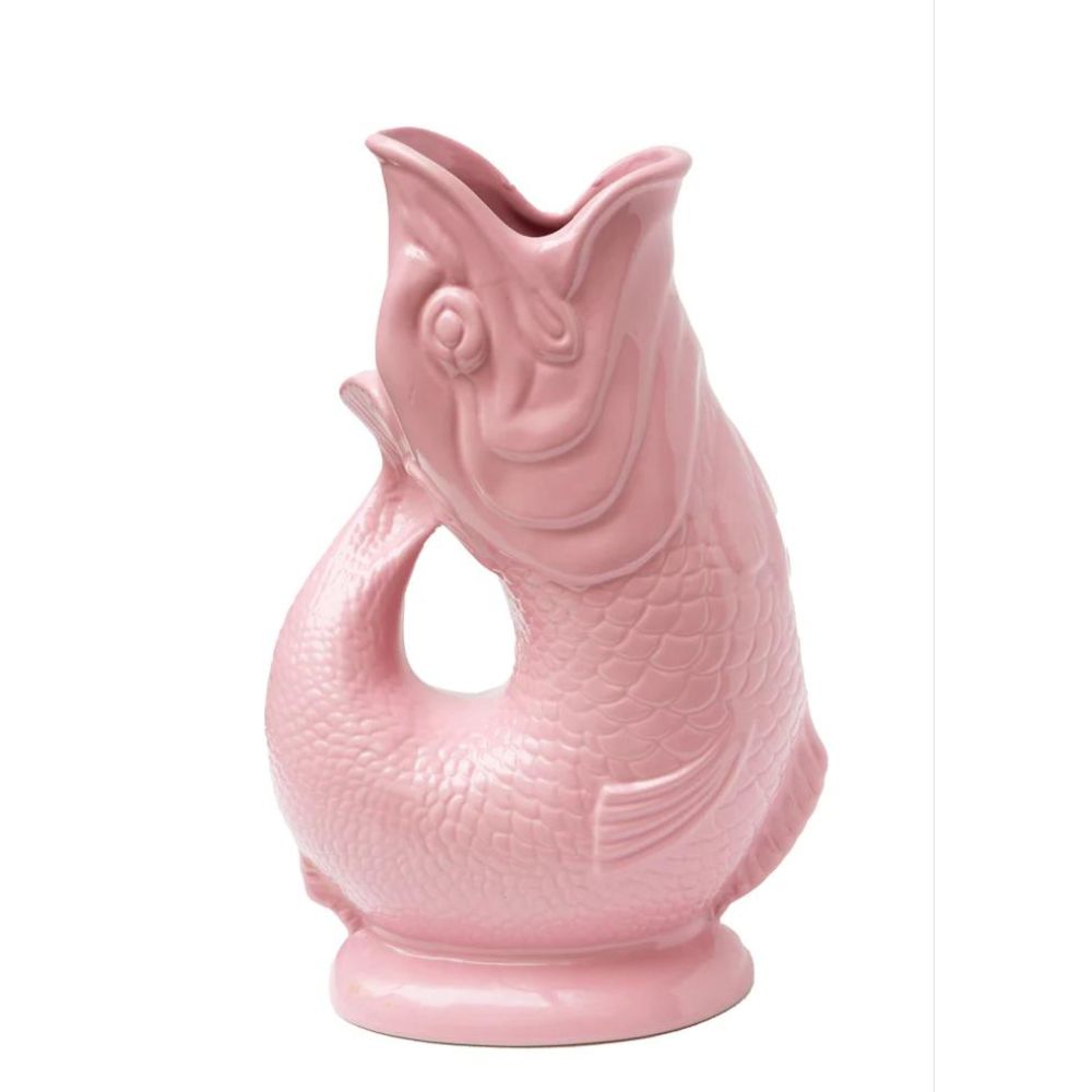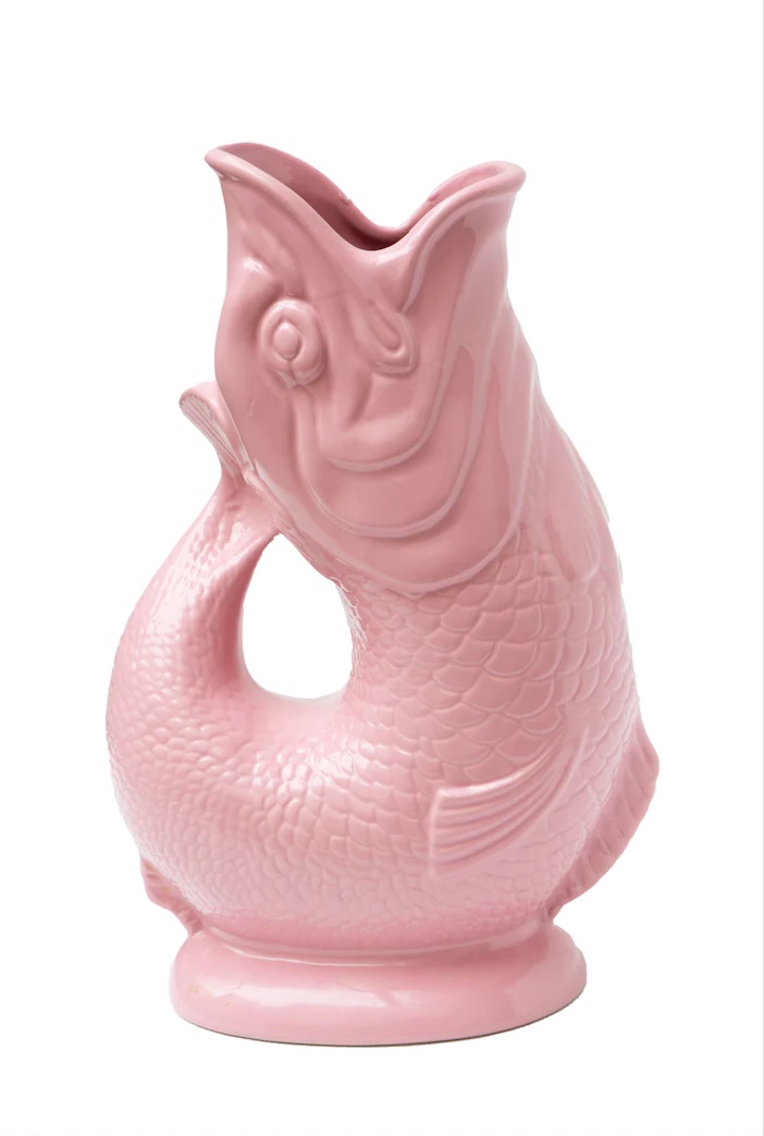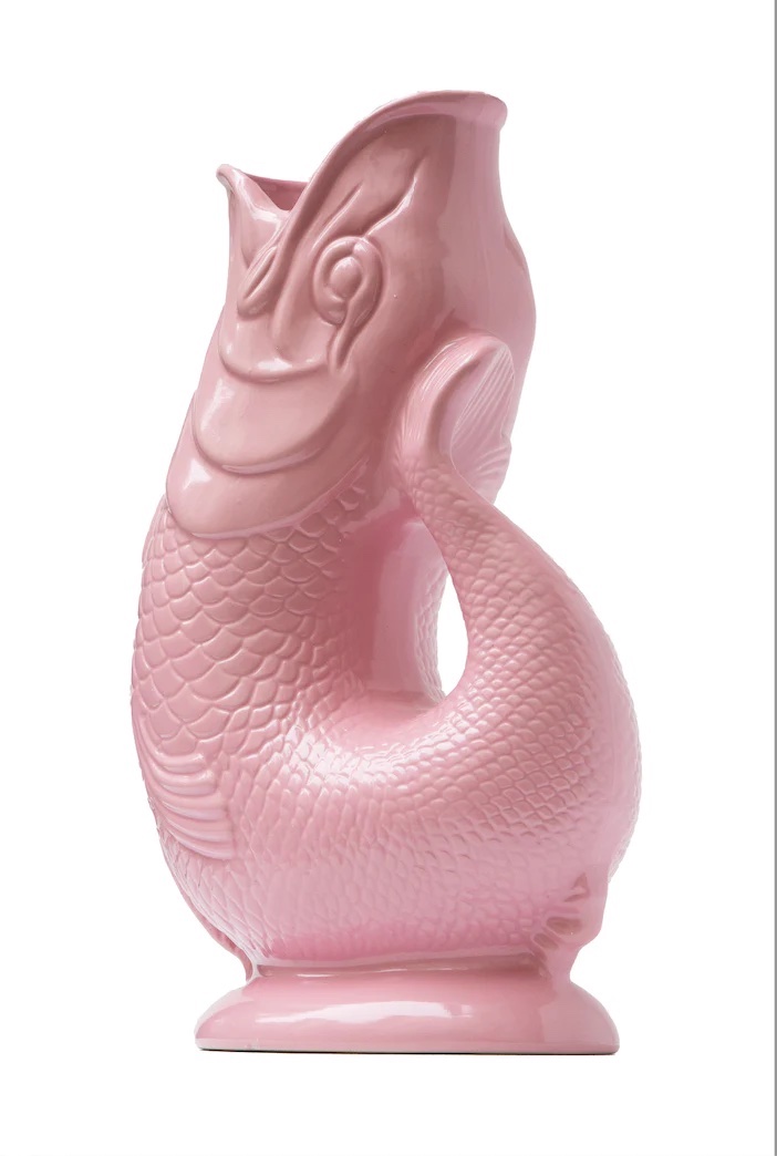 Cette carafe insolite en céramique en forme de poisson, également appelée “gluckigluck”, doit son nom au bruit de “gluck” ou ‘glouglou” en français que l’on fait en la versant.
