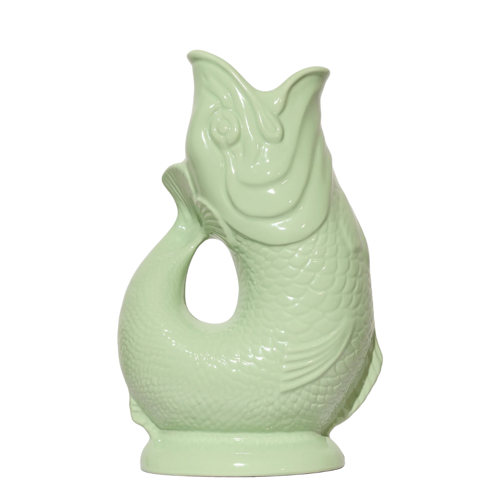 Cette carafe insolite en céramique en forme de poisson, également appelée “gluckigluck”, doit son nom au bruit de “gluck” ou ‘glouglou” en français que l’on fait en la versant.