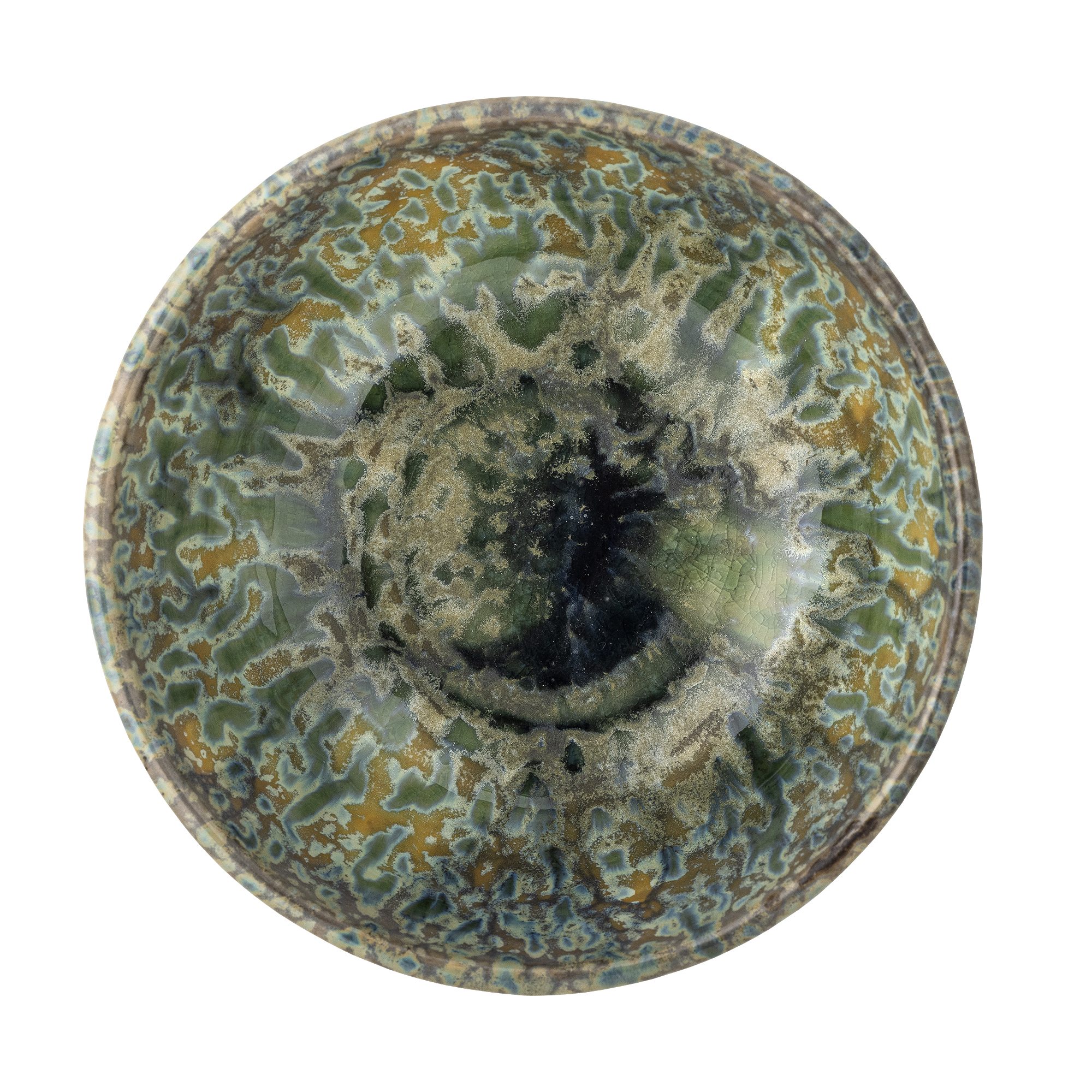 L’émail présente des nuances de vert variées avec des détails nacrés qui mettent en valeur le jeu de couleurs naturel du bol. Parfait pour servir des noix et des petites collations ou comme solution de rangement décorative pour de petits objets dans le salon ou la chambre