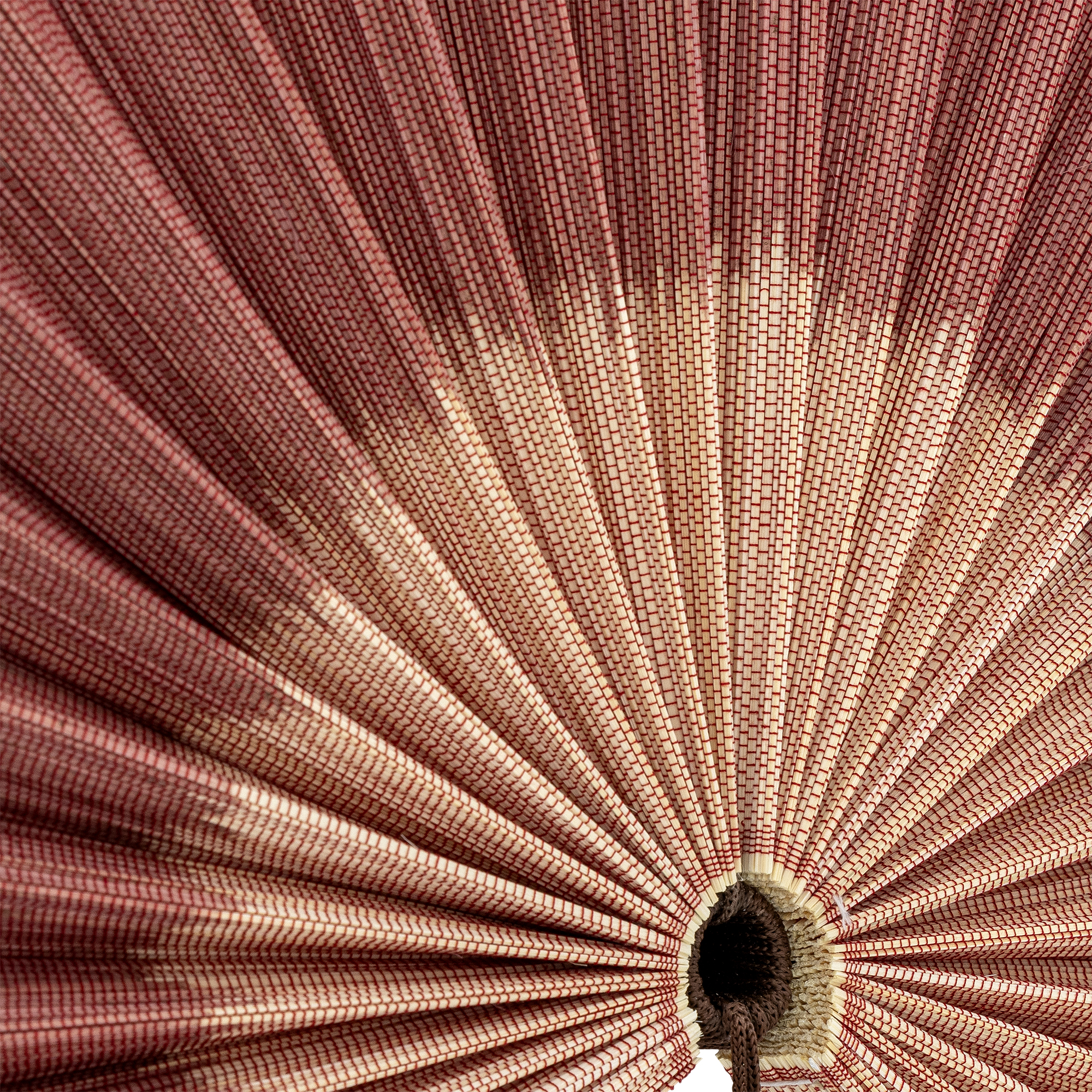 La Décoration Murale, fabriquée en bambou de couleur rouge profond, est un éventail élégant et décoratif.