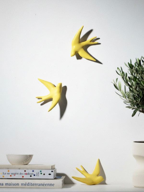 Décoration murale en céramique hirondelle, Volage, symbole de liberté et de pureté.