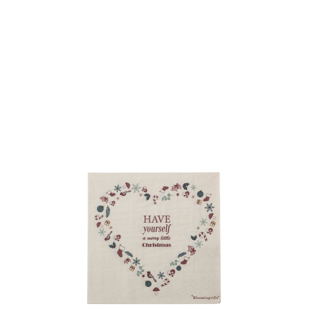 Les serviettes, en papier doux, arborent un joli motif de cœurs de Noël accompagné du texte ‘Have yourself a merry little Christmas’.